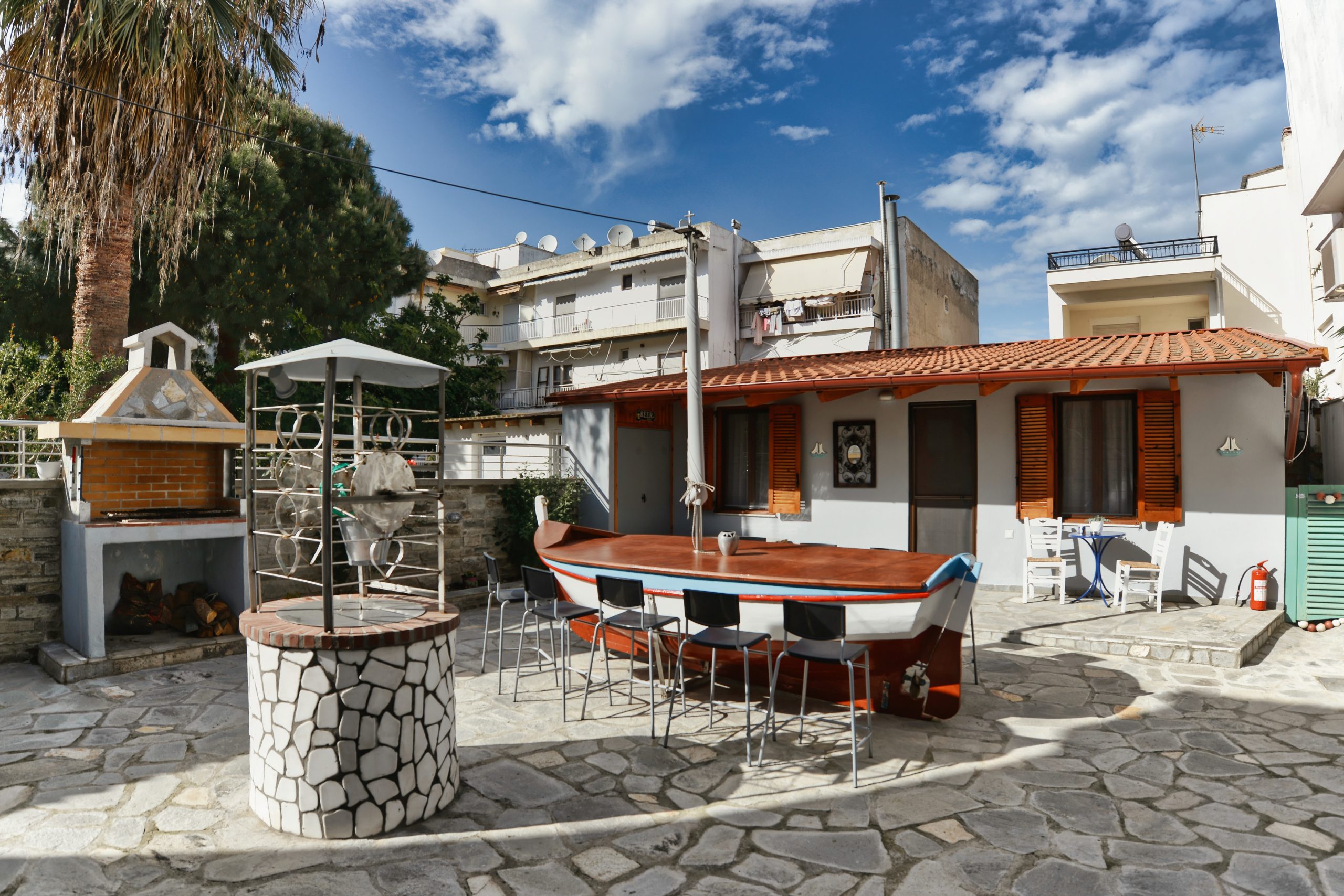 The yard is equipped with tables(boat) and chairs, BBQ,drink cooler,and flowers.