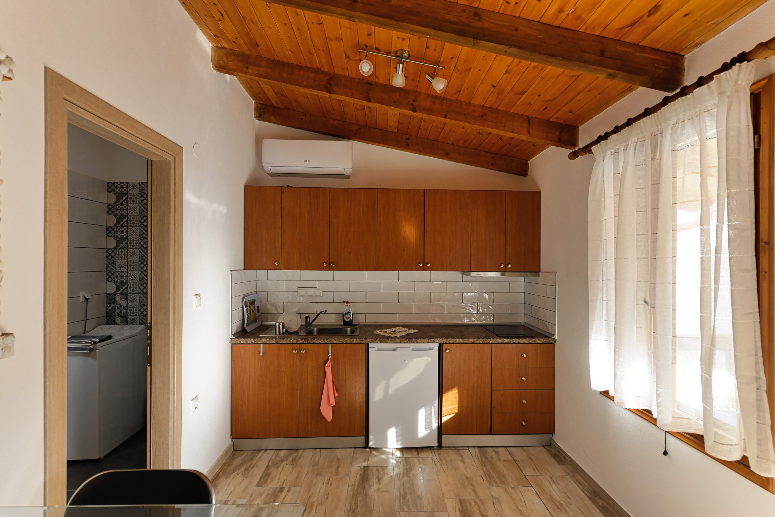 fridge,double ceramic hob,coffee maker,plates,dishes,glasses etc.
